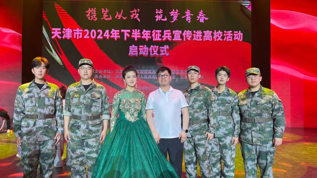 5月29日上午,由天津市人民政府征兵辦公室、天津市教育委員會主辦,天津市河西區(qū)人民政府征兵辦公室、天津體育學(xué)院協(xié)辦的“寫筆從戎·筑夢青春—天津市2024年下半年征兵宣傳進高校活動啟動儀式”在天津體育學(xué)院成功舉辦。歌劇學(xué)院青年教師蘇淵峰帶隊,學(xué)生孫金紅、曹勖、閻茂鑫、李志豪、高文韜、張項懿參與演出。學(xué)校黨委對此次演出任務(wù)高度重視,多部門通力配合,歌劇學(xué)院領(lǐng)導(dǎo)對節(jié)目前期排練給予了全力支持,并在演出前對同學(xué)們進行了培訓(xùn),確保此次演出順利完成。
