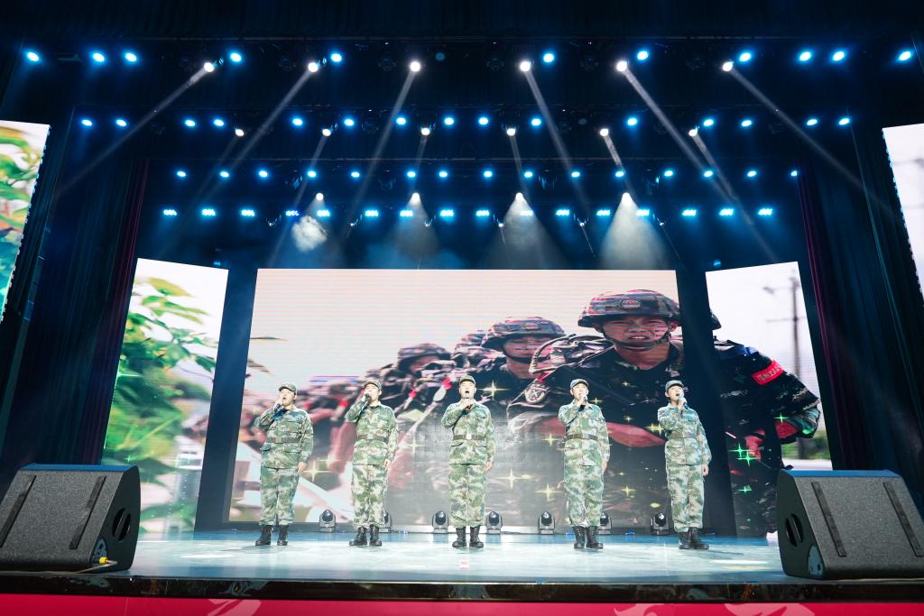 演出在華麗熱情的音響中達到高潮,現(xiàn)場觀眾掌聲雷動,點燃了廣大青年學(xué)子實質(zhì)強軍報國的激情和夢想,展現(xiàn)了青年學(xué)子們的愛國情懷和報效國家的熱情。