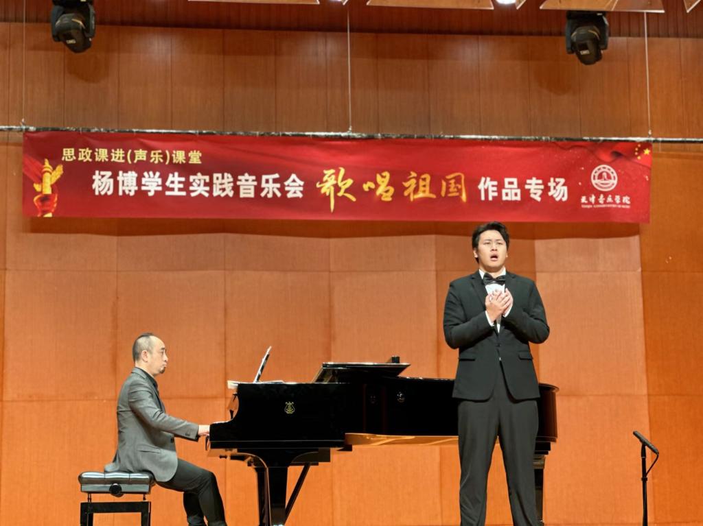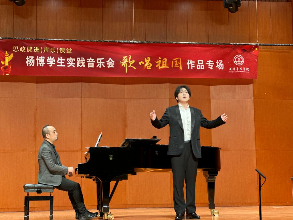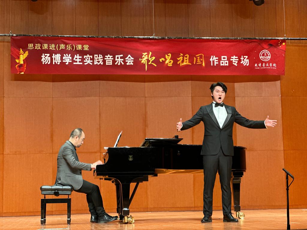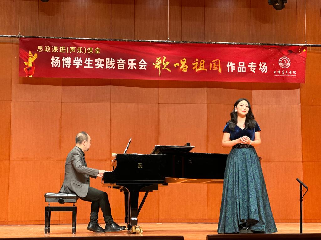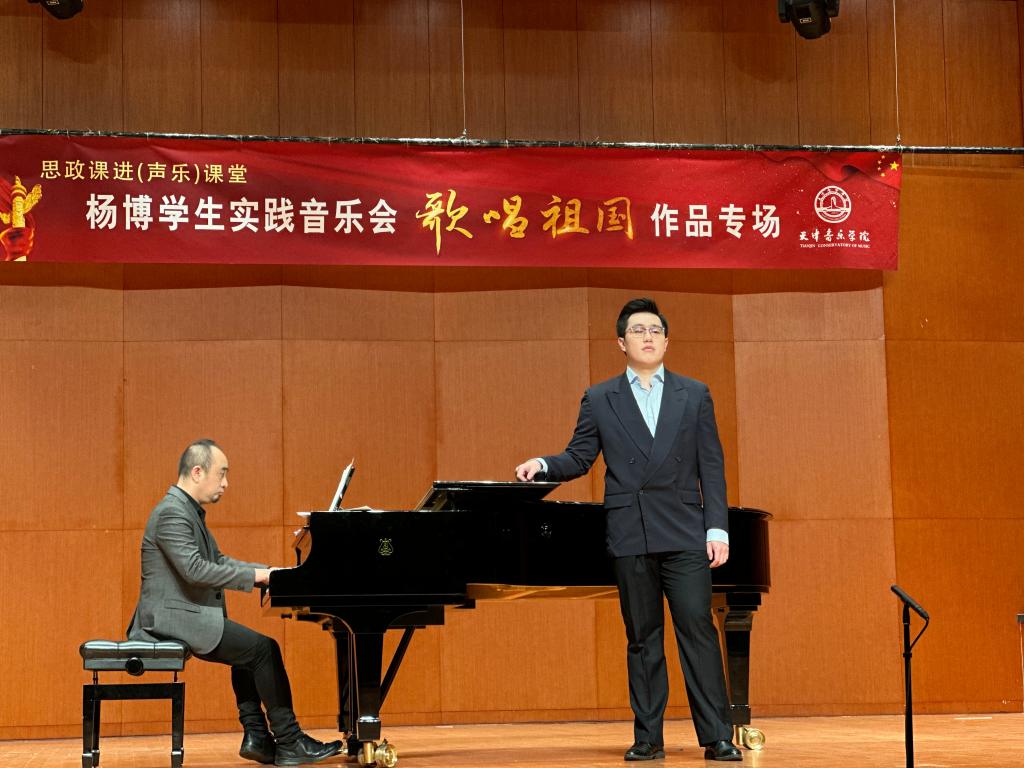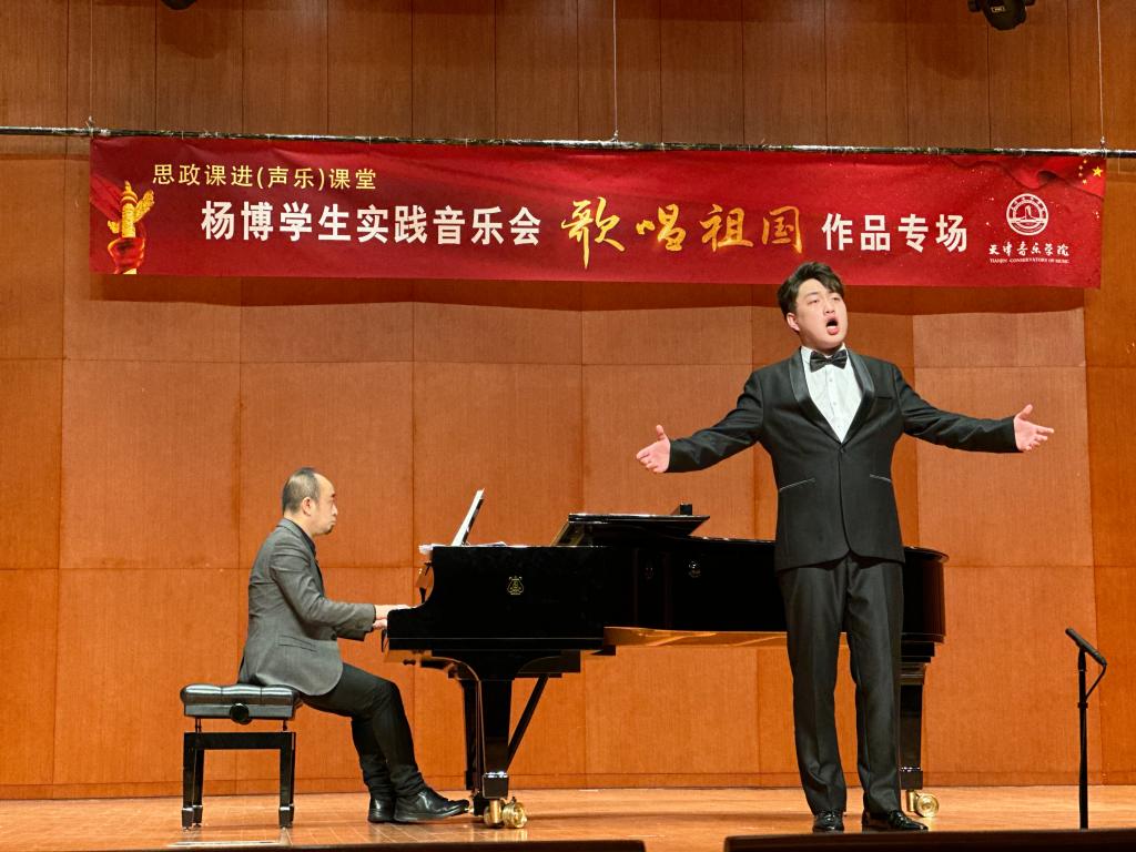 9月27日晚,思政課進(聲樂)課堂——楊博學生實踐系列音樂會(歌唱祖國作品專場)于天津音樂學院演奏廳隆重上演。本場音樂會以“歌唱祖國”為主題,旨在將課堂教學理念與音樂會實踐相結合,激發每一位演唱者和聽眾的愛國情懷和使命擔當。