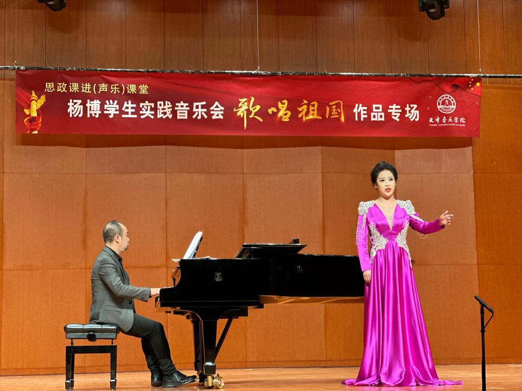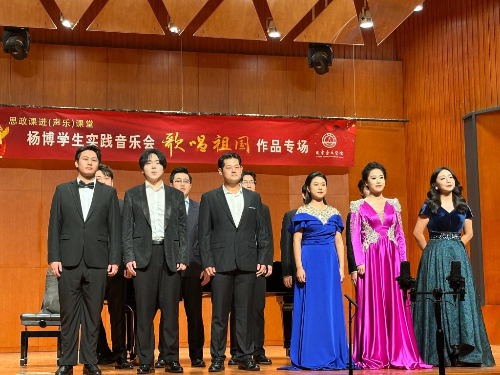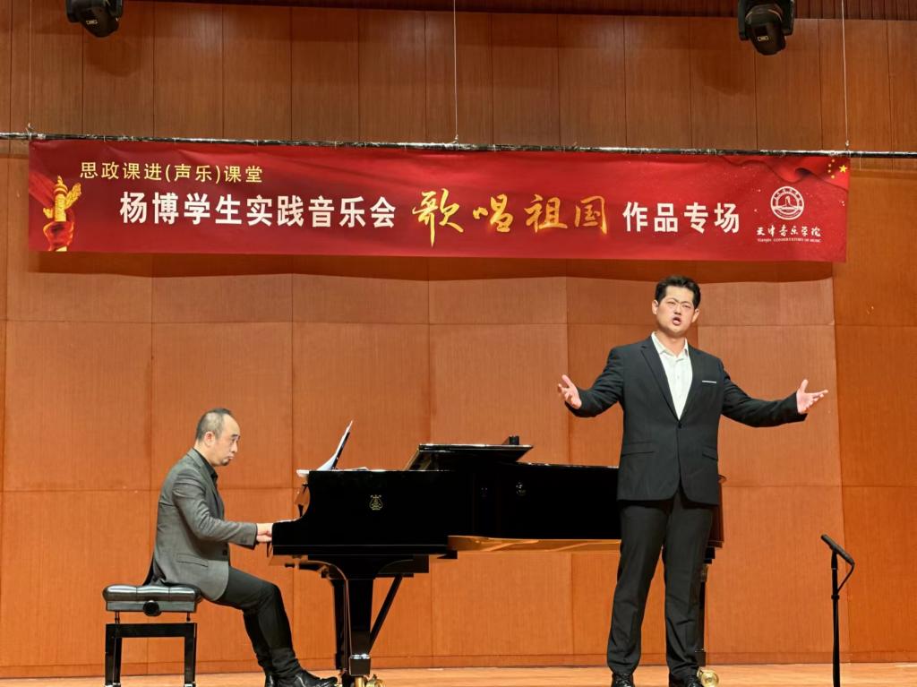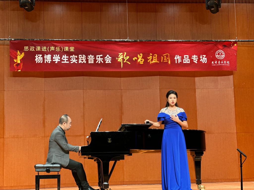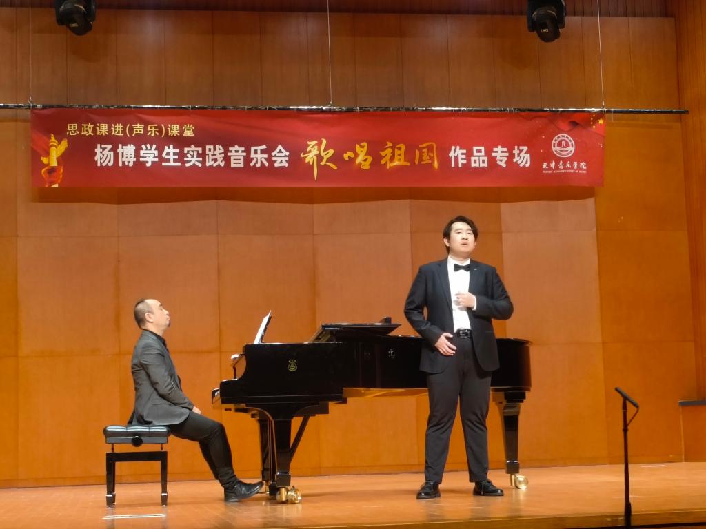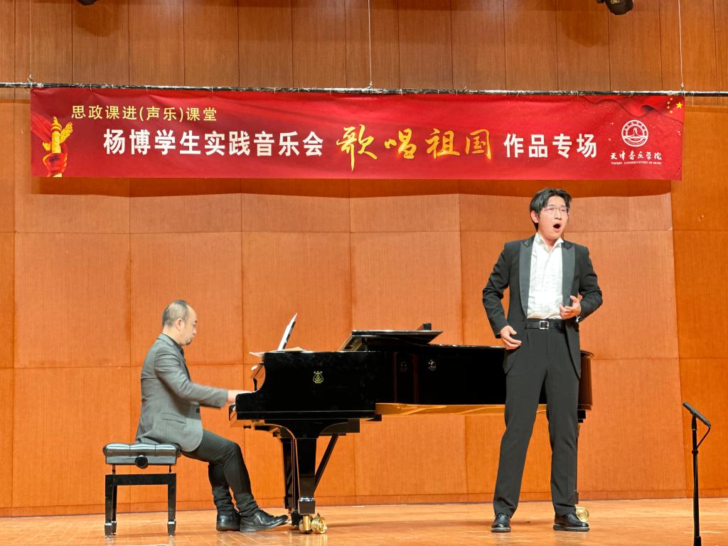 9月27日晚,思政課進(聲樂)課堂——楊博學生實踐系列音樂會(歌唱祖國作品專場)于天津音樂學院演奏廳隆重上演。本場音樂會以“歌唱祖國”為主題,旨在將課堂教學理念與音樂會實踐相結合,激發每一位演唱者和聽眾的愛國情懷和使命擔當。