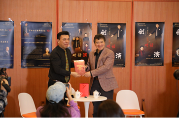 訪談臨近結束,張海峰教授向杜吉剛教授贈送了《新時代軍樂之聲:慶祝中華人民共和國成立70周年典禮閱兵曲》專輯唱片,并代表作曲指揮系贈送了教師節紀念品。